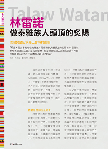 「希望,是占卜鳥啣住的嫩葉,是泰雅族人頭頂上的炙陽。」林雷諾以