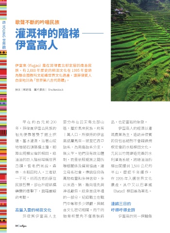 祖先便靠著雙手掘土挖 十萬人口,所操持的伊富 溉農業為主,造訪菲律賓