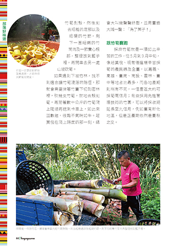 裡,砍幾支竹筍,就地去殼削 採筍兩個月;有些採用先進管