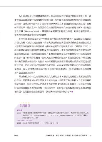 (165) 狩獵權釋憲:原住民族文化權與生態動態管理的再奮進 57