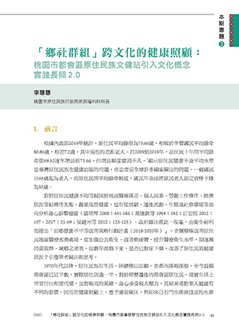 (227) 「鄉社群組」跨文化的健康照顧:桃園市都會區原住民族文健站引入文化概念實踐長照2.0 43