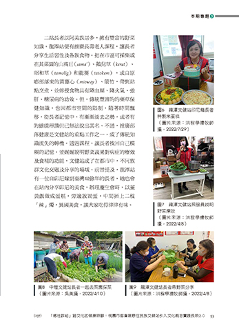 圖8 中壢文健站長者一起去菜園採菜 圖9 龍潭文健站長者帶野菜分享
