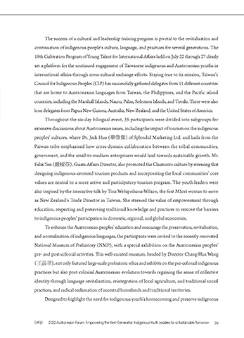 (263) 2022 Austronesian Forum: Empowering the Next-Generation Indigenous Youth Leaders for a Sustainable Tomorrow 79