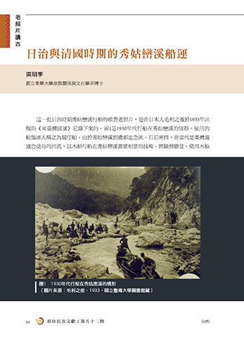 版的《東臺灣展望》記錄下來的。圖1是1930年代行船在秀姑巒溪的情形,使用的