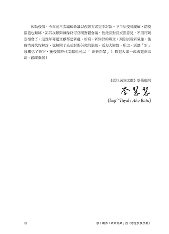 (7) 序|期待「新新向榮」的《原住民族文獻》