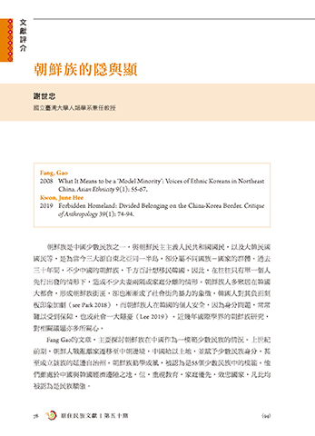 Fang Gao的文章,主要探討朝鮮族在中國作為一模範少數民族的情況。上世紀