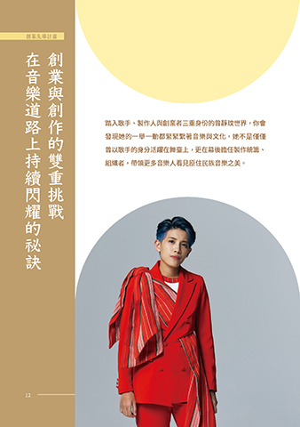 創業先導計畫 在音樂道路上持續閃耀的祕訣 創業與創作的雙重挑戰 踏入歌手、製作人與創業者三重身份的曾靜玟世界,你會 發現她的一舉一動都緊緊繫著音樂與文化,她不是僅僅 曾以歌手的身分活躍在舞臺上,更在幕後擔任製作統籌、 組織者,帶領更多音樂人看見原住民族音樂之美。 12