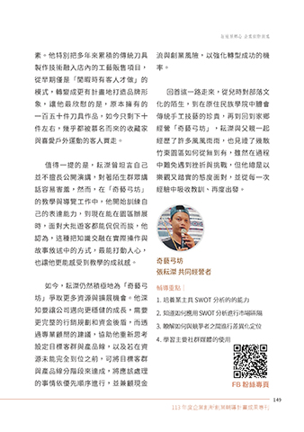 素。他特別把多年來累積的傳統刀具 流與創業風險,以強化轉型成功的機