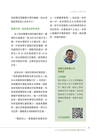 團膳市場,撐起敢作夢的未來 來的信念。在臺東這片土地上,他用