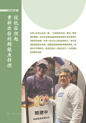 百萬創業計畫 創業先導計畫 重新出發的鱘龍魚料理 從低谷爬起 在新北烏來山區的一隅,「加納富魚食坊」看似一間普 通的餐廳,但它的背後卻藏著經營者簡建中多年來奮鬥 與創新的故事。作為一名土生土長的泰雅族人,建中憑 著對鱘龍魚的熱情,從遭受颱風摧毀的養殖場開始,經 過多年不懈努力,逐漸打造出一個結合文化、自然與創 新經營的品牌。 38 38