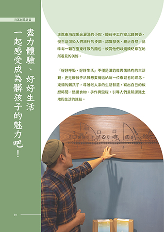 創業先導計畫 百萬創業計畫 一起感受成為 盡力體驗 走進東海岸陽光灑滿的小院,髒孩子工作室以麵包香、 慢生活渲染人們旅行的步調。認識部落、親近自然,品 味每一顆在臺東呼吸的麵包、欣賞他們以鏡頭紀錄在地 、 所看見的美好。 好好生活 「好好呼吸、好好生活」不僅是潘鈞偉與張皓畇的生活 髒 觀,更是髒孩子品牌想要傳遞給每一位來訪者的理念。 東漂的髒孩子,尋著老人家的生活智慧,寫出自己的板 孩子的魅力 曆時間,透過食物、手作與遊程,引導人們重新認識土 地與生活的連結。 吧 ! 50 50