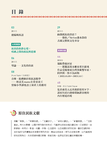 掌故」等六大專欄,以電子期刊發行的形式,刊載原住民族各種文獻史料、口述歷史、田