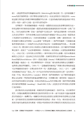 家,近年對於原住民族樂舞的採集與研究很豐富。然而,作為一個大部分原住民