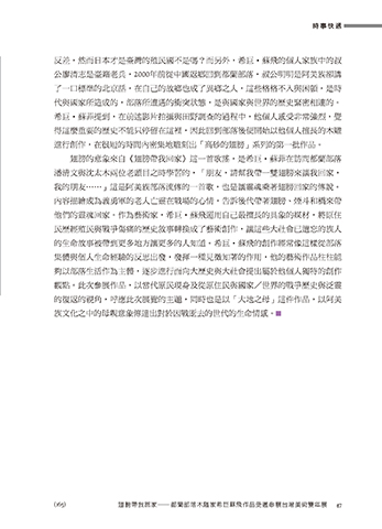 觀點。此次參展作品,以當代原民現身及從原住民與國家/世界的戰爭歷史與泛靈