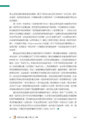 的族群被建構景象。對照撒烏瓦知部落的新社群倫理,也可以說疫後的自我安全考