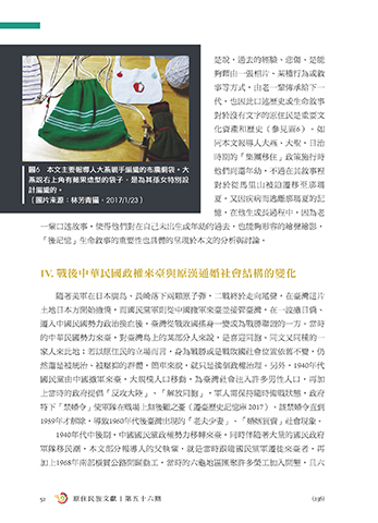 IV. 戰後中華民國政權來臺與原漢通婚社會結構的變化