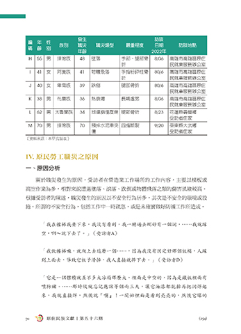 H 55 男 排灣族 48 墜落 手部、腿部骨 8/06 高雄市高雄區原住
