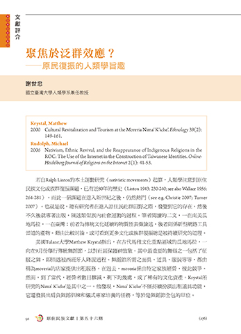 民族文化或族群復振課題,已有近80年的歷史(Linton 1943: 230-240; see also Wallace 1956: