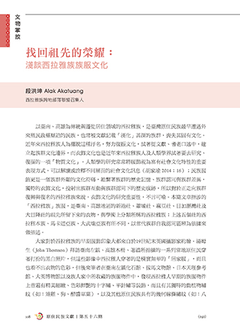 復興與復名的西拉雅族來說,衣飾文化的研究重要性,不言可喻。本篇文章指涉的