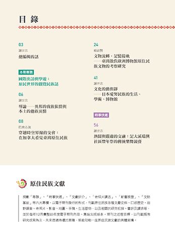 掌故」等六大專欄,以電子期刊發行的形式,刊載原住民族各種文獻史料、口述歷史、田