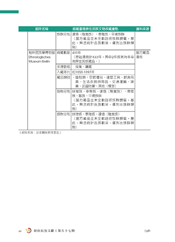 館所名稱 館藏臺灣原住民族文物收藏重點 資料來源