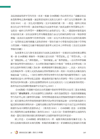 及促進國家族群平等的理念。再者,根據《108課綱》的自然科列出「鼓勵原住民