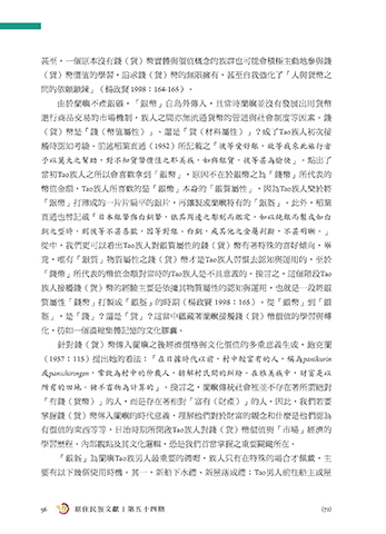針對錢(貨)幣傳入蘭嶼之後經濟價格與文化價值的多重意義生成。鮑克蘭