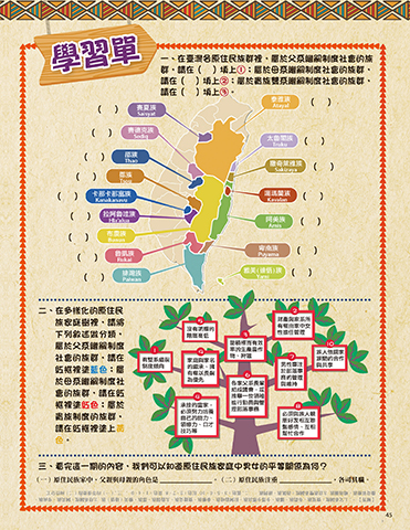 學習單 一、在臺灣各原住民族群裡,屬於父系繼嗣制度社會的族