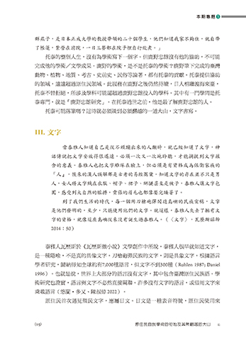 動物、植物、地質、考古、史前史、民俗等論著,都有托泰的貢獻。托泰提供協助