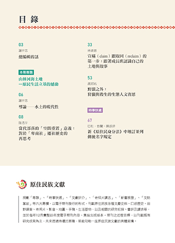 掌故」等六大專欄,以電子期刊發行的形式,刊載原住民族各種文獻史料、口述歷史、田