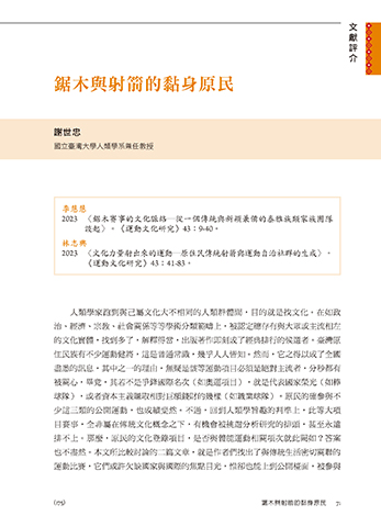 2023 〈文化力量射出來的運動―原住民傳統射箭與運動自治社群的生成〉。
