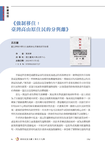 原住民移住政策,並運用地圖對照實際遷移過程,以及透過高砂族調查書所重建的