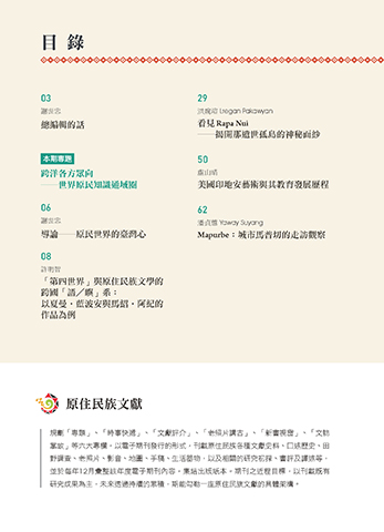 掌故」等六大專欄,以電子期刊發行的形式,刊載原住民族各種文獻史料、口述歷史、田