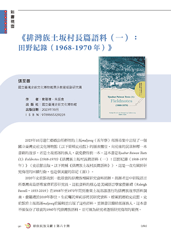 不僅保存了珍貴的1960年代排灣族語料,並可做為研究者遵循研究倫理的範例。