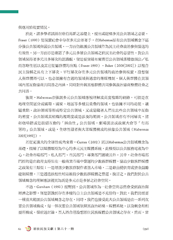 若從更廣大的全球性視角來看,Curran(2002)則以Habermas公共領域概念為