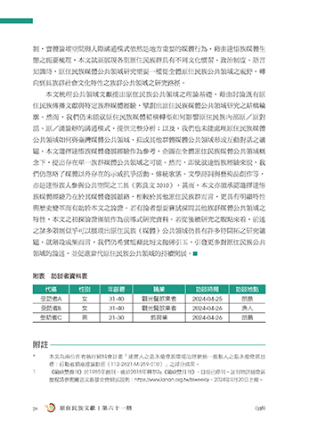 題。就階段成果而言,我們仍希冀能藉此短文拋磚引玉,引發更多對原住民族公共