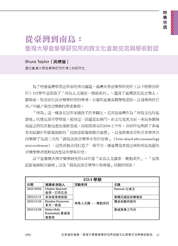 (365) 從臺灣到南島:臺灣大學音樂學研究所的跨文化音樂交流與學術對話 77