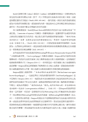「土地做為教育學」(land as pedagogy)的概念來檢視。Simpson認為打造原住民族