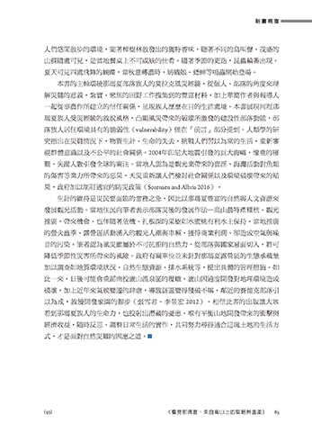 音的污染。筆者認為風災雖屬於不可抗拒的自然力,從部落與國家層面切入,將可