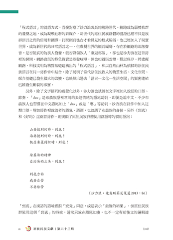 農族人也習慣在中文語尾加上「dau」或是「嘟」等助詞,沙力浪在詩作中加入這