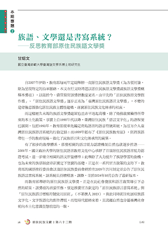 除為呈現特定的沿革脈絡,本文在行文時將逕以原住民族語文學獎或族語文學獎概