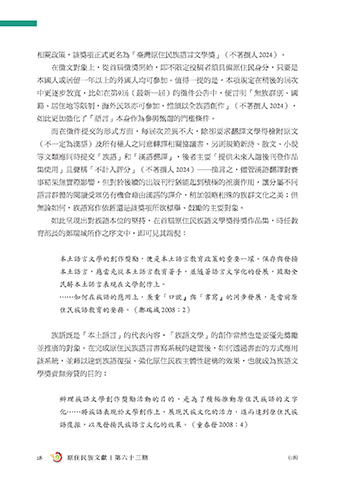 相關政策,該獎項正式更名為「臺灣原住民族語言文學獎」(不著撰人 2024)。