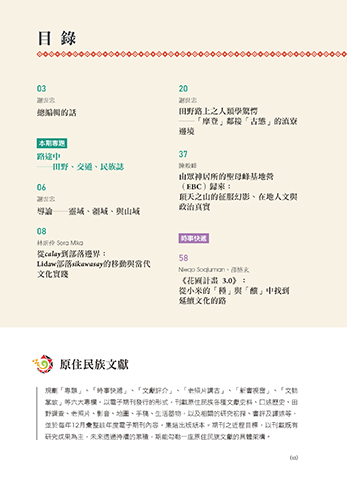 掌故」等六大專欄,以電子期刊發行的形式,刊載原住民族各種文獻史料、口述歷史、田
