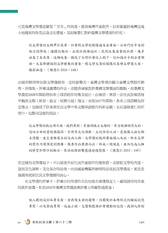 土地獨有的特色以及文化價值。又如陳憲仁對於臺灣文學獎項的研究: