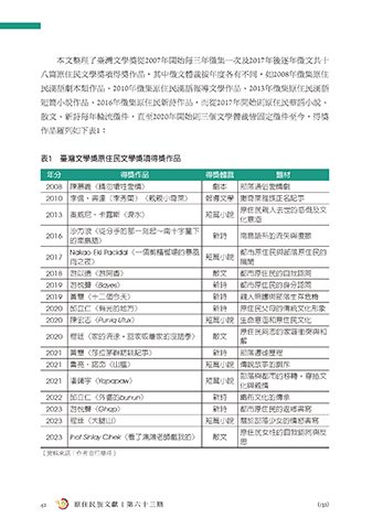 表1 臺灣文學獎原住民文學獎項得獎作品