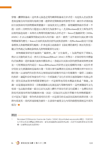 2020b)才以人鳥關係開啟更加深入的討論。此外,雖然二文皆談原住民社會中跨