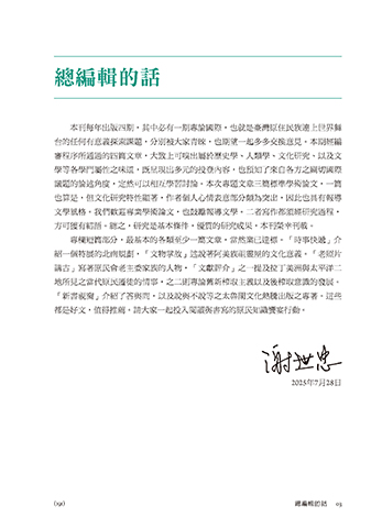 講古」寫著原民會老主委家族的人物,「文獻評介」之一提及拉丁美洲與太平洋二