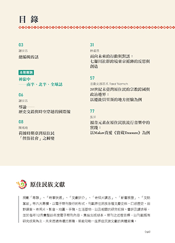 掌故」等六大專欄,以電子期刊發行的形式,刊載原住民族各種文獻史料、口述歷史、田