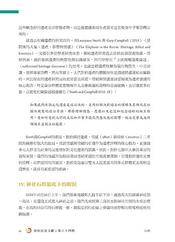 的,因此現在的遺產研究反而更需要去肯認,情緒與情感應該要被視為遺產實踐的