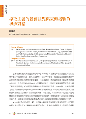 篇論文就在討論兩代榨取主義的特徵與對當地社會/生態的影響,或有提出改變的
